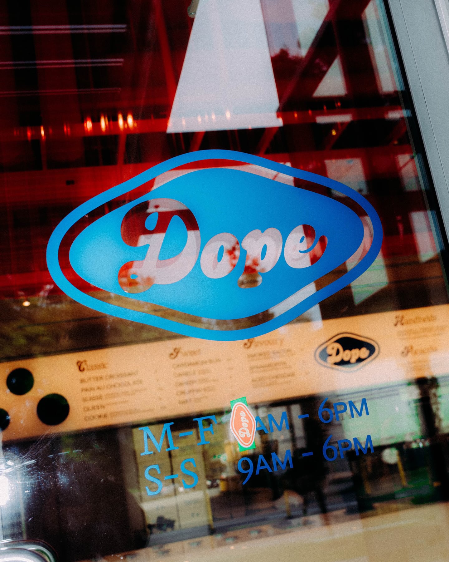 More tongue-in-cheek and unexpected than their established coffee shop Nemesis, Dope’s brand direction is a fresh take on nostalgic elements; 1960’s Japanese cartoons and script typography. There is a considered hand done touch without taking itself too seriously. Stickers with facial expressions show patrons enjoying pastries, graphic elements with soft edged shapes are inspired by the interior build, and the badge logo is a nod to logo flips in streetwear.